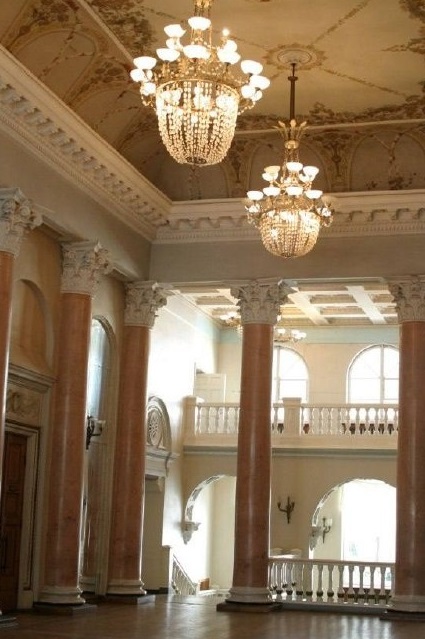 Піднімаємося в дзеркальний зал, неймовірної краси приміщення: ліпнина, колони і звичайно багато дзеркал. У деяких місцях ліпнина починає псуватися, керівник закладу каже, все потребує ремонту, але це великі кошти, бо приміщення величезне й утримувати його не просто.