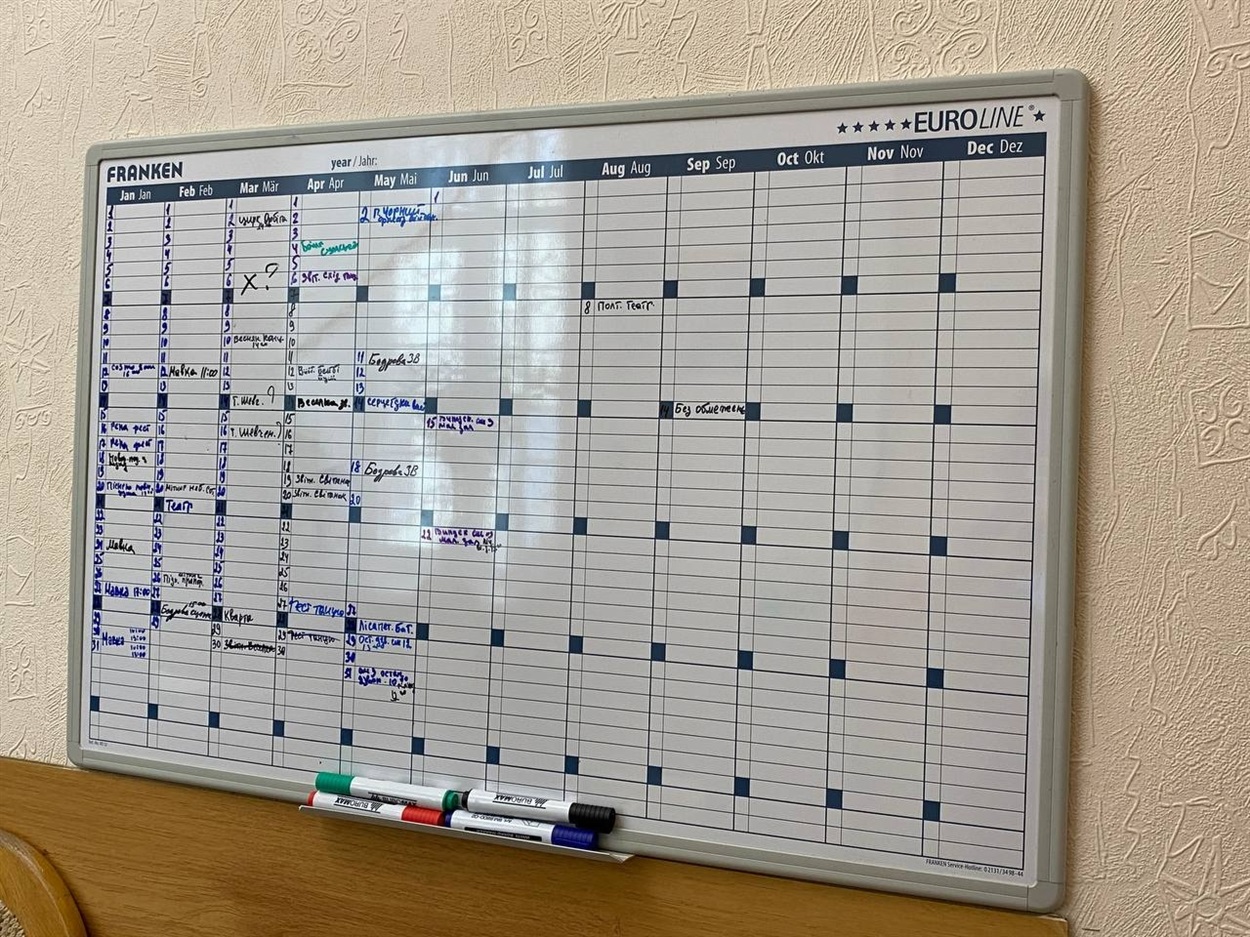 Разом з директором закладу проходжу у її кабінет. Світлий, з великою кількістю документів на столі та графіком роботи на стіні.