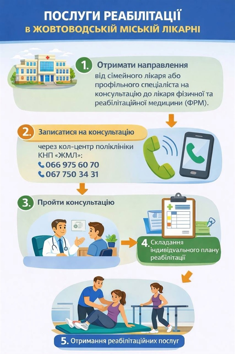 Щоб скористатися безоплатною реабілітацією у Жовтоводській міській лікарні, необхідно: