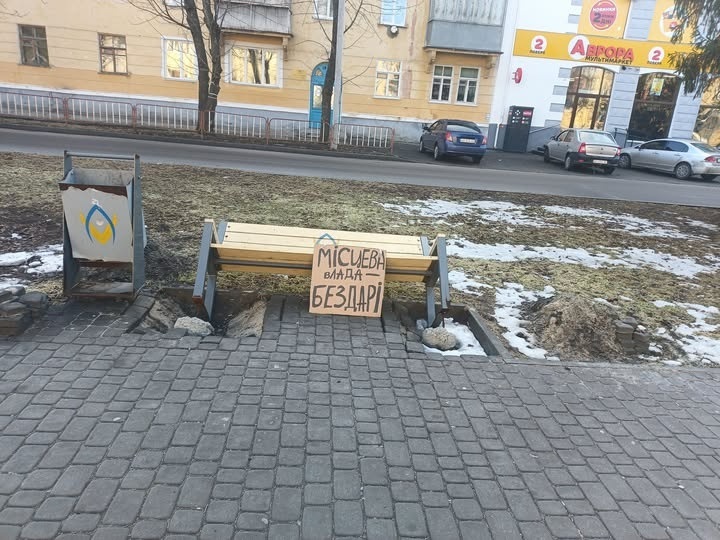 Табличку встановили біля лавок, які ще влітку 2025 року пошкодили вандали. Довгий час вони залишалися незакріпленими. Цікаво, що саме того дня, коли фото почало поширюватися у соцмережах, лавки нарешті відремонтували та закріпили.